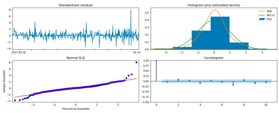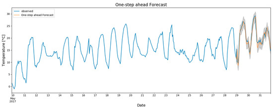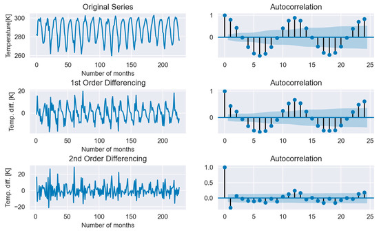 - Temperature data are a SARIMAX (p = 1, d = 0, q = 1) × (P = 0, D = 1, Q = 1, m = 24) with an AIC of 1475.57 (maximum AIC of 4441.75)