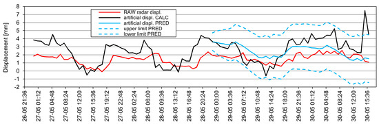 - Effective modeling of time series for satellite data allows for partial limitation of false alarms at the initial stage using MODIS–NASA data and for significant limitation of false alarms already at the stage of GBSAR installation working for some time. The proposed algorithm is advantageous because solutions based on so-called stable pixels are practically difficult to implement. It is necessary to have an independent method to check the stability of such a point or assume that selected element of the observed 3D scene is permanent (difficult assumption).