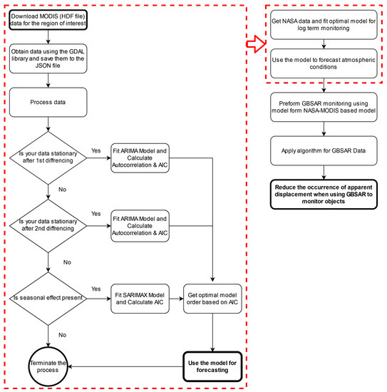 - The MODIS–NASA data are used for the preliminary assessment of weather conditions that may occur in the place of the future GBSAR-based monitoring installation. Such locations rarely have an installation of the weather conditions monitoring established a priori. Therefore, at an early stage of observation (before the weather monitoring station installed together with the GBSAR radar gathers enough data), the model based on MODIS data is valuable.