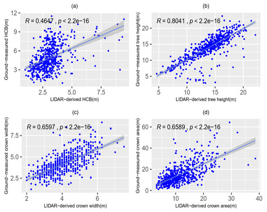 - Zhang, W.; Ke, Y.; Quackenbush, L.J.; Zhang, L. Using error-in-variable (EIV) regression to predict tree diameter and crown width from remotely sensed imagery. Can. J. For. Res. 2010, 40, 1095–1108. [Google Scholar] [CrossRef]