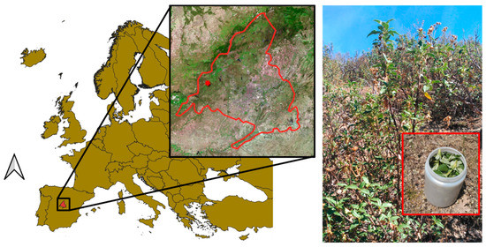Location of the study area and example of a field sample collected in the C. ladanifer shrubland.