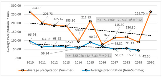 The estimated resident population (ERP) data of the Australian Bureau of Statistics (ABS) were used to investigate the socioeconomic aspects of anthropogenic activities. In the case of calculating GHG emissions due to anthropogenic activities, this study used the national GHG inventory database of the Australian government—AGEIS [46]. In order to reveal the changes in precipitation and temperature over time, data were taken from the Australian Bureau of Meteorology (BoM).