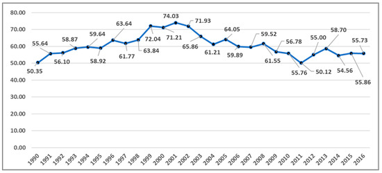 Thus, ESV2019 = 3224 × (258.68/229.59) = USD 3632.40 [50]. This adjusted ESV2019 was used to calculate the net losses in ESV that occurred in the decades of 1989–1999, 1999–2009, and 2009–2019.