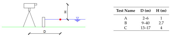 Several tests have been carried out in the wave tank changing both sensor layout (D and H in Figure 7) and marker arrangement, aimed to identify the best configuration for markers detection and tracking. The table in Figure 7 reports three of the most significant experimental trials with varying parameters.