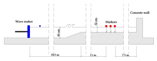 To address these problems, the research is turning to remote sensing techniques also in laboratory environments. They are non-intrusive and allow wave field measurement in wide areas, by using well-established instruments experimented in the open sea in indoor laboratories. Allis et al. [8] have measured waves generated in a wave flume (40 m long and 0.6 m wide) by using lasers, validating the data with a set of eight capacitive probes installed along the central axis of the wave flume. Water was seeded with kaolinite powder to improve the water turbidity and enhance the reflectance of laser in water. Blenkinsopp et al. [9] found that the differences between the measurements performed by the laser and those by capacitive electrodes were of the order of 5 mm, in terms of root mean square error (RMSE), at least for wave height up to 0.3 m.