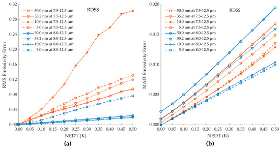 - OuYang, X.; Wang, N.; Wu, H.; Li, Z.-L. Errors analysis on temperature and emissivity determination from hyperspectral thermal infrared data. Opt. Express 2010, 18, 544–550. [Google Scholar] [CrossRef]