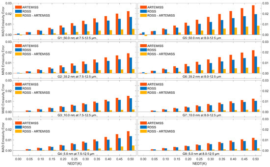 3.2.1. The Relationship of the Retrieval Errors of ARTEMISS vs. the Noise Level and Spectral Parameters