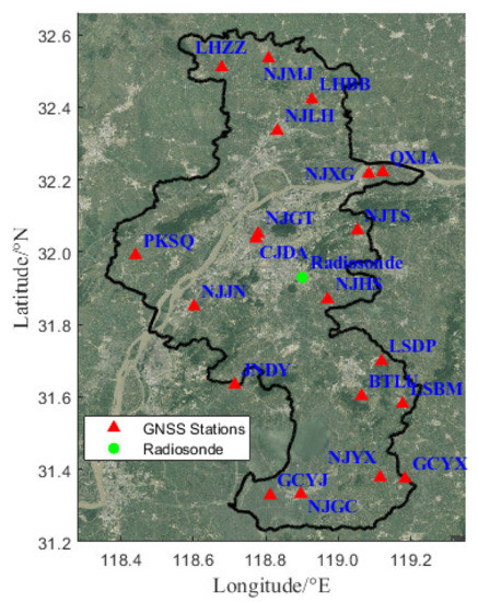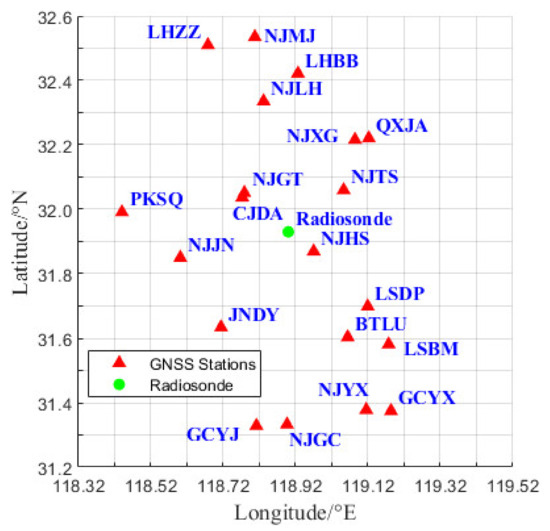 - Bevis, M.; Businger, S.; Herring, T.A.; Rocken, C.; Anthes, R.A.; Ware, R.H. GPS meteorology: Remote sensing of atmospheric water vapor using the Global Positioning System. J. Geophys. Res. Atmos. 1992, 97, 15787–15801. [Google Scholar] [CrossRef]