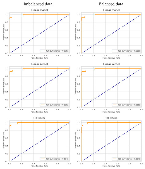 The choice of the best kernel (among linear, polynomial and RBF) and of best parameters was accomplished by a two-staged grid-search with cross-validation (CV). Besides the kernelized SVM models, the Linear model (that assumes the data is linearly separable without using any kernel function [31]) was also evaluated (Figure 4). While scikit-learn’s kernelized SVM classifier uses a ‘one-against-one’ multiclass strategy, the Linear model employs “one-vs-the-rest” [42].