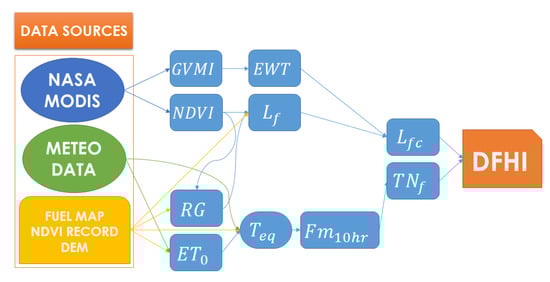 Simplified flowchart of the DFHI (Daily Fire Hazard Index) algorithm.