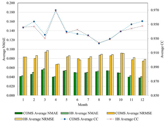 In addition to low to zero solar irradiation, seasonal variation of factors which can influence local climate and weather conditions is another source of error. In this study, such seasonal factors were assumed to have affected both COMS and H8 images to an equal extent since the image acquisition times of both satellites are relatively similar. The actual effects of seasonal factors are thus not addressed in the comparison between COMS and H8, but since seasonal variation such as meteorological phenomena can hinder effective PV power generation, factors related to seasonality are discussed further in Section 6.3.