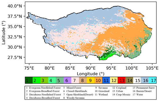 The International Geosphere-Biosphere Programme (IGBP) land cover type on the Tibetan Plateau.