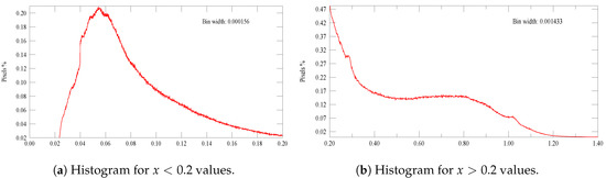 Histograms of the two x-value groups (Equation (10)) of MODIS data to define the ANNs’ inputs.