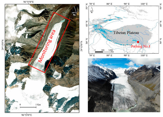 Recent ground-based and large-scale remote sensing studies have revealed that monsoonal glaciers in the southeastern Tibetan Plateau have experienced significant mass loss during the last two decades, exceeding the average for High Mountain Asia [1,2]. Comprehensive studies of glacier dynamics and their controlling factors are essential for understanding glacier response to climate change and for predicting glacier-related disasters, such as glacial lake outburst floods [3,4], ice avalanches [5] and glacial debris flows [6], which are common in this monsoon-dominated glacierized region [7].