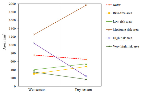 | Risk Level | Degree of Risk | Risk-Value Range | Wet Season | Dry Season | ||