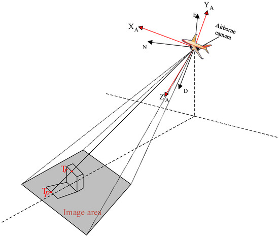 If is the position of the target projection point in the camera coordinate system, then its coordinates in the earth coordinate system can be calculated using the above transformation matrices.