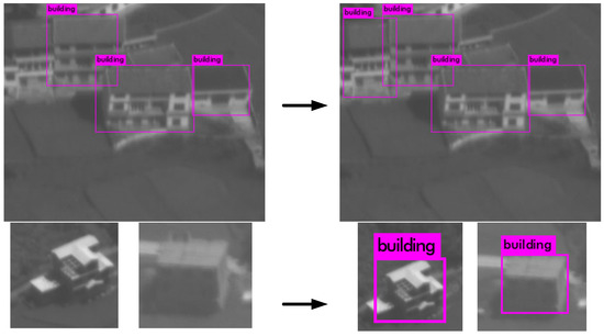 An appropriate method that can detect the image and automatically identify the building should be selected to distinguish the building target in the image from the ground target to avoid affecting the positioning result of the ground target. The buildings in the oblique images show different characteristics from those of the overlooking images, such as neighboring buildings being blocked in the image. The height, shadow, angle, and edge characteristics vary for each building. Therefore, the traditional top-down image recognition method is less effective and cannot detect buildings in oblique images. Recently, owing to the rapid development of deep learning algorithms based on convolutional neural networks, scholars have conducted research on the building detection in remote sensing images through deep learning. However, most research focused on the detection of targets from overlooking images, especially for the automatic recognition of large-scale urban images [17,18]. The relevant research results cannot be directly applied to oblique images. Therefore, although the application of long-range oblique imaging is widely used, limited research has been conducted on related datasets and detection algorithms.