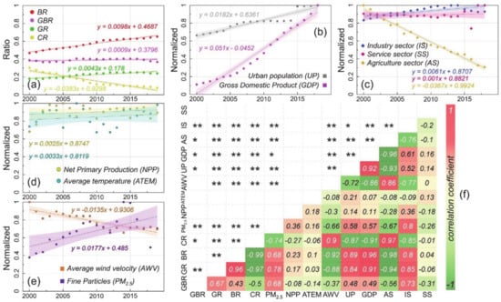 3.3. Quantified Correlation of Land Dynamics, Socio-Economic Development, and Environment Change