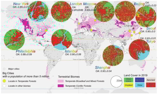 - Pan, T.; Kuang, W.; Hamdi, R.; Zhang, C.; Zhang, S.; Li, Z.; Chen, X. City-Level Comparison of Urban Land-Cover Configurations from 2000-2015 across 65 Countries within the Global Belt and Road. Remote Sens. 2019, 11, 1515. [Google Scholar] [CrossRef]