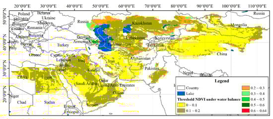Threshold value of the mean annual NDVI under water balance between 1982 and 2015 over the Silk Road Economic Belt.