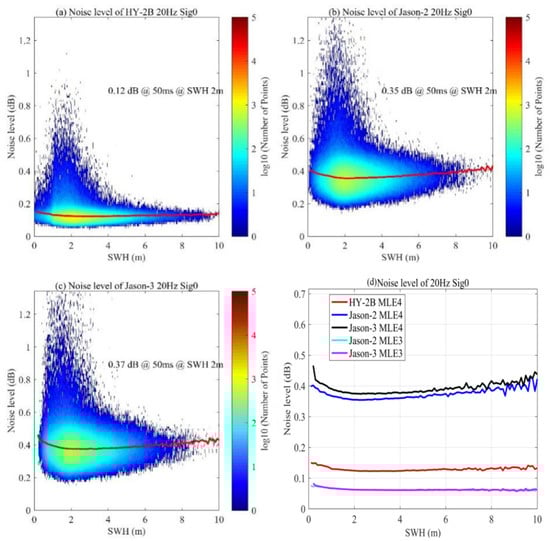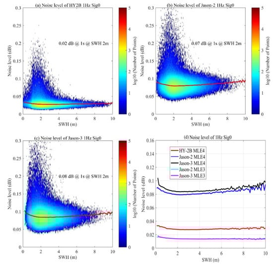 However, the Sig0 obtained by using MLE-3 retracking algorithm after empirical correction is significantly better than that of using standard MLE-4 [17]. The Sig0 noise of Jason-2 and Jason-3 after empirical correction is also better than that of HY-2B.