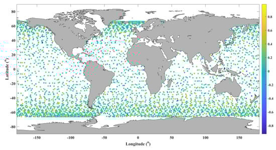 Since the availability of the Level 2 product data of the HY-2B and Jason-3 satellites was determined to be approximately 90%, this study used the data missing rate to explain the obtained results in order to be clearer and more intuitive.