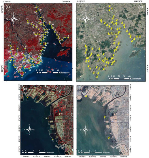 - Hu, X.; Wang, Y. Coastlines change of the pearl river estuary in the past 40 years using landsat dataset and its environmental implications. In IGARSS 2019-2019 IEEE International Geoscience and Remote Sensing Symposium; IEEE: Yokohama, Japan, 2019; pp. 8197–8200. [Google Scholar]