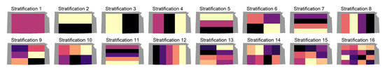 Sample selection biases for the labelled data were introduced based on stratification layers. There were 16 stratification layers that partitioned the study area into up to 16 strata (Figure 3). For each stratification layer, a simple random sample was drawn within a single stratum that was itself selected at random. This process was repeated 25 times per stratification layer. By constraining sampling to a single stratum, the likelihood of capturing partial environmental and management gradients increases, with the net effect of reducing the spread of reference data in the feature space.