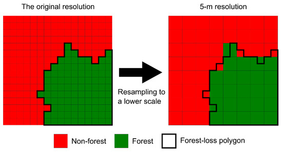 Schematic illustration of a forest-loss polygon including non-forest. Four percent of the forest-loss polygon in this figure is covered with non-forest with lower resolution land classification map.