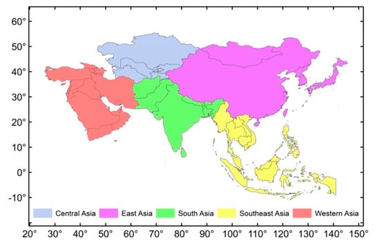 This study is carried out over Asia as a whole and separately in each of its regions, given in Table 1.