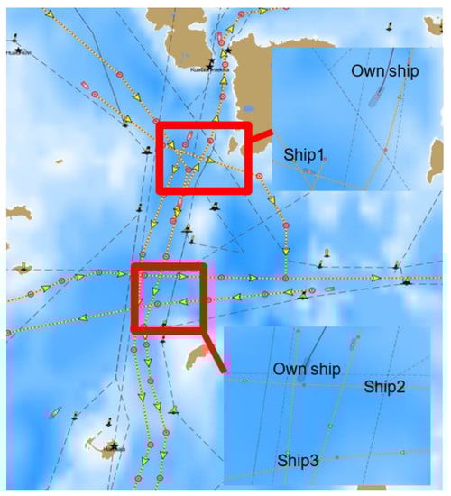- Martio, J.; Happonen, K.; Karvonen, H. Simulations of autonomous ship collision avoidance system for design and evaluation. In Proceedings International Maritime Design Conference (IMDC), Espoo, Finland, 10–14 June 2018. [Google Scholar]