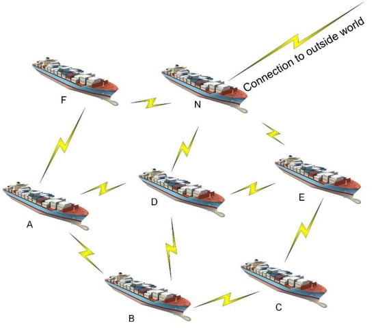Figure 13 shows a concept to be studied further in the future, namely ship mega-constellation. This is related to satellite mega-constellations [61] that aim to provide global connectivity, with hundreds of interconnected satellites. Ships could create a mobile ad hoc network with multi-hop features among hundreds of ships in order to communicate using high-data-rate solutions such as 5G or 6G radios. This would also provide resiliency to data transfer. As an example, ship A in the figure could be connected to the remote operations center using the route through ships D and N. The use of multi-hop networks, the selection of suitable radio interfaces and their capacity, coverage, and latency characteristics should be studied in order to understand their feasibility for autonomous shipping and to any use case defined in Figure 1.