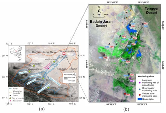 - Chunyu, X.; Huang, F.; Xia, Z.; Zhang, D.; Chen, X.; Xie, Y. Assessing the Ecological Effects of Water Transport to a Lake in Arid Regions: A Case Study of Qingtu Lake in Shiyang River Basin, Northwest China. Int. J. Environ. Res. Public Health. 2019, 16, 145. [Google Scholar] [CrossRef]
