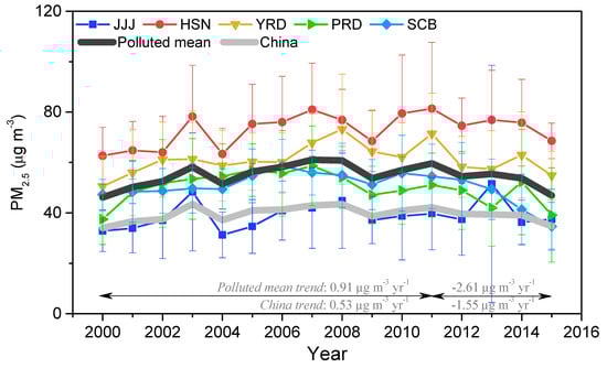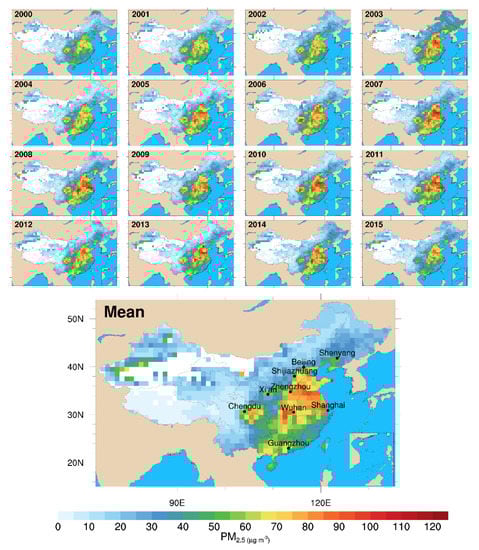 4.3. Trend Comparison of PM2.5 over 2000–2015