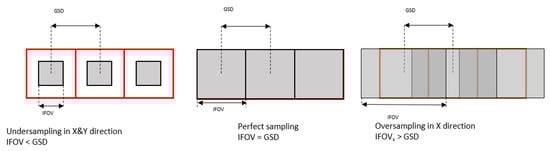 Different sampling conditions. Three ground pixels are equally spaced, however, depending on instantaneous field of view (IFOV) detectors, this scene might be over/under sampled.