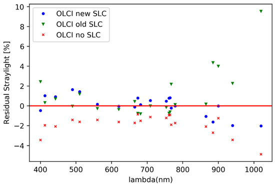 Residual stray-light in different SLC variants. Strong overcorrection of the longest wavelengths is replaced by slight undercorrection (negative values).