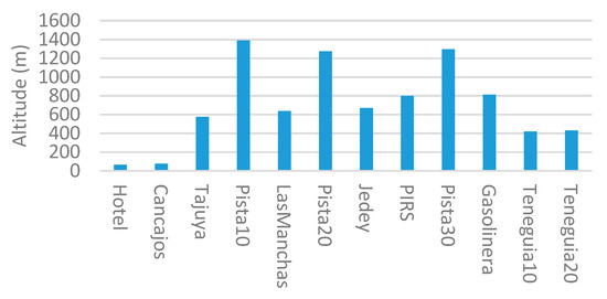Graphic representation of the altitudes of the different stations in the micro-gravimetric network on La Palma Island.