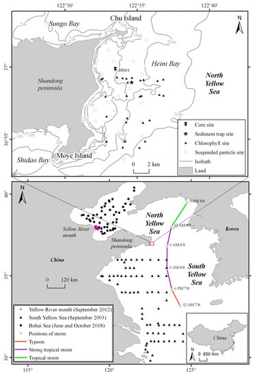 - Liu, X.; Huang, H.; Yan, L.; Liu, Y.; Ma, L. Dynamics of settling particulate matter during typhoon Muifa in Heini Bay, China. Chin. J. Oceanol. Limnol. 2015, 33, 210–221. [Google Scholar] [CrossRef]