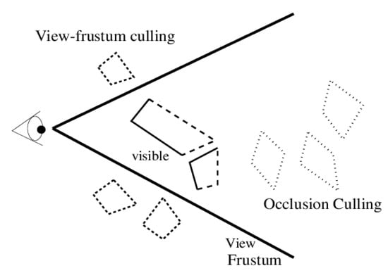 - Nirenstein, S.; Blake, E.; Gain, J. Exact From-Region Visibility Culling. In Proceedings of theThirteenth Eurographics Workshop on Rendering, Pisa, Italy, 26–28 June 2002. [Google Scholar]