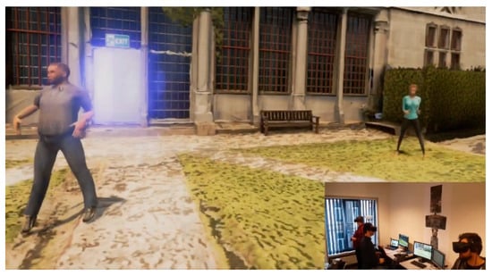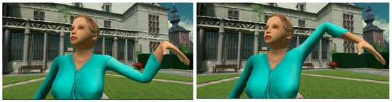 - Parger, M.; Mueller, J.H.; Schmalstieg, D.; Steinberger, M. Human upper-body inverse kinematics for increased embodiment in consumer-grade virtual reality. In Proceedings of the 24th ACM Symposium on Virtual Reality Software and Technology, Tokyo, Japan, 28 November 2018; pp. 1–10. [Google Scholar]