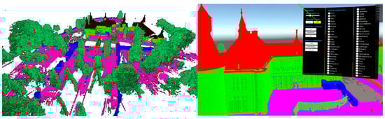 - Kharroubi, A.; Hajji, R.; Billen, R.; Poux, F. Classification and integration of massive 3d points clouds in a virtual reality (VR) environment. Int. Arch. Photogramm. Remote Sens. Spat. Inf. Sci. 2019, 42, 165–171. [Google Scholar] [CrossRef]