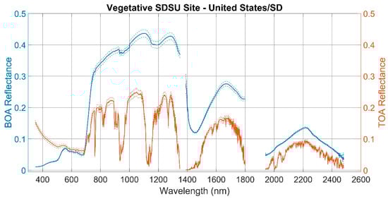- Pinto, C.T.; Leigh, L.; Helder, D. SDSU Vegetative Site Analysis from 2013 to 2017 for Radiometric Calibration of Earth Observation Sensors. In Proceedings of the Brazilian Symposium on Remote Sensing, 19 (SBSR), Santos, Brazil, 14–17 April 2019; pp. 1–4. [Google Scholar]