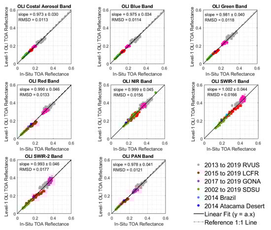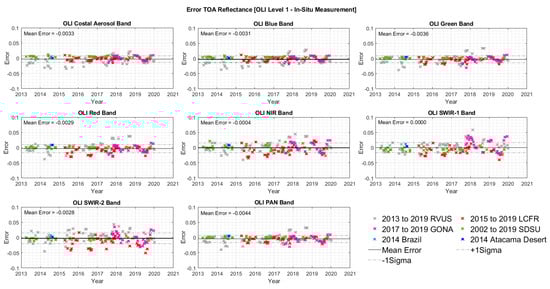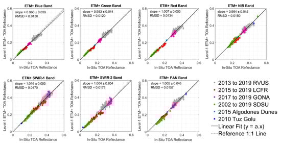 5.1. Landsat-7 and Landsat-8 Level-1 Data Product Evaluation Results