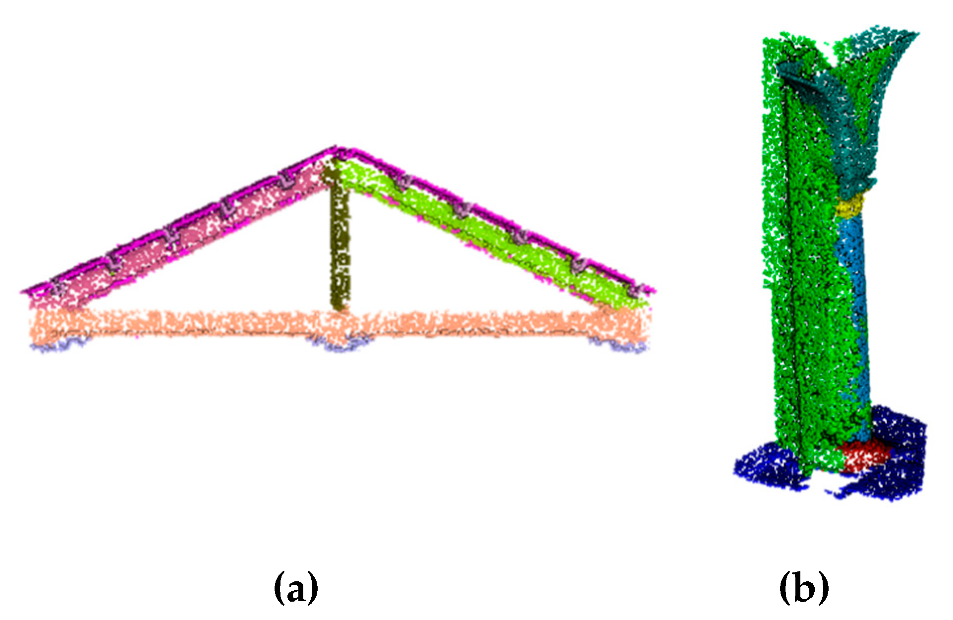 - Kashani, A.G.; Graettinger, A.J. Cluster-Based Roof Covering Damage Detection in Ground-Based Lidar Data. Autom. Constr. 2015, 58, 19–27. [Google Scholar] [CrossRef]