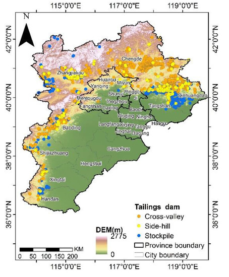 Distribution of tailings dams in the Jing–Jin–Ji region.