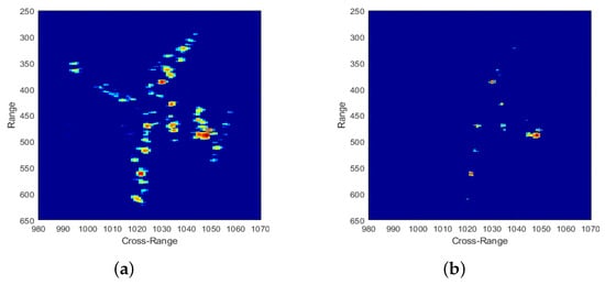 where denotes the frequency domain. It can be seen from Equation (10) that the resolution in cross-range direction is proportional to CPI . However, the targets of ISAR are usually non-cooperative, so the CPI is greatly limited, leading to low cross-range resolution for RD imaging algorithm. As a result, ISAR CS imaging with limited data becomes more significant and practical.
