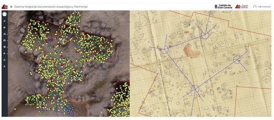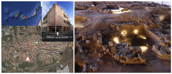 - De Guzmán, C.M.; Pintado, J.O.; Sagasti, J.S. Trabajos en el Parque Arqueológico de la Cueva Pintada de Gáldar, Gran Canaria. Avances de las intervenciones realizadas en 1993. Anuario de Estudios Atlánticos 1996, 42, 17–76. [Google Scholar]