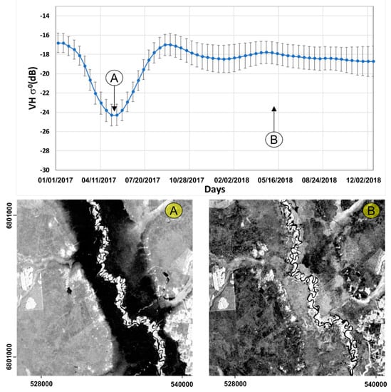 - Martinez, J.M.; Le Toan, T. Mapping of flood dynamics and spatial distribution of vegetation in the Amazon floodplain using multitemporal SAR data. Remote Sens. Environ. 2007, 108, 209–223. [Google Scholar] [CrossRef]