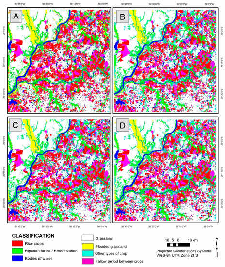 - Turner, M.D.; Congalton, R.G. Classification of multi-temporal SPOT-XS satellite data for mapping rice fields on a West African floodplain. Int. J. Remote Sens. 1998, 19, 21–41. [Google Scholar] [CrossRef]