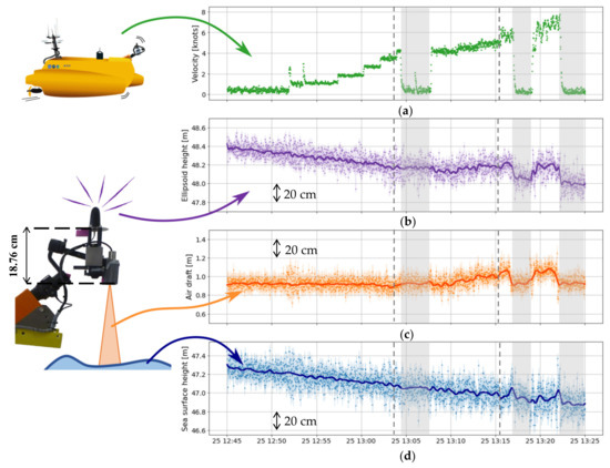 One of the main challenges with kinematic GNSS sea-level mapping systems is to continuously monitor the GNSS antenna height above the water level (air-draft), which can vary with the load and speed of the platform. As the velocity increases, a boat’s hull lifts out water (hereafter named “planing effect”), potentially inducing biases in the GNSS vertical component.